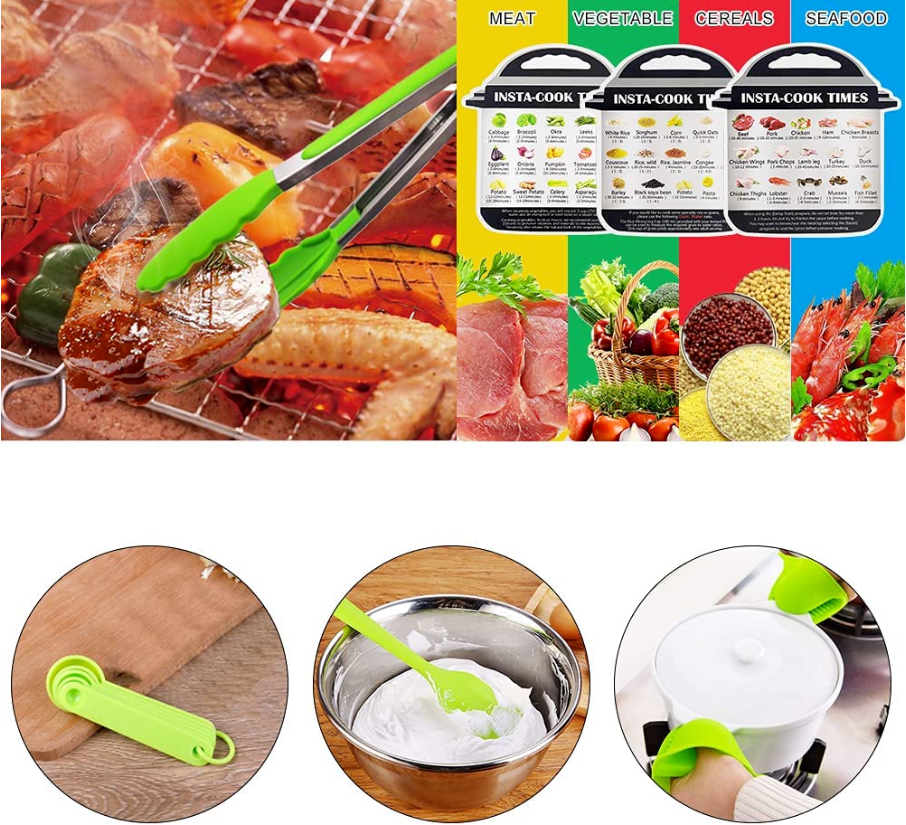 • ★[21 Pcs Instant pot accessories] Pressure cooker acessories provide all you needs for delicious foods. It includes 1 Large capacity steamer basket, 1 Springform Pan, 1 Steamer basket with divider, 1 Egg Bites Mold, 1 Stackable Egg Steamer Rack , 1 Steamer Rack Trivet with Heat Resistant Handles, 1 kitchen Tong, 1 Silicone Spatula, 2 Oven Mitts,3 Magnetic Cheat Sheets,1 CookBook(Instruction & Recipes), 6 in 1 Measuring Spoons,1 Gift Box,1*60 Pcs Parchment Steamer Papers Liners