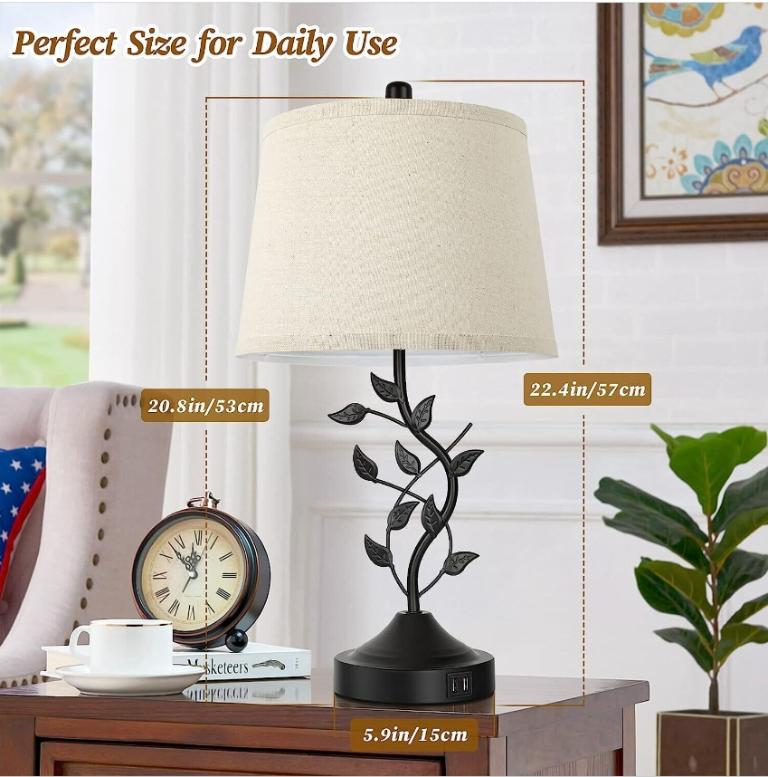 ❤【Elegant Table Lamps for Home Lighting】This table lamp is aesthetically styled with the metal leafy design which creates an organic element and endows it with an earthy feel. To complement the retro theme, we equipped it with cream fabric shade. Nevertheless, the base and body are in the classic black finish for preserving its modern look. The distinctive design makes it a timeless option for any decoration scheme such as traditional, vintage, modern, rustic etc.