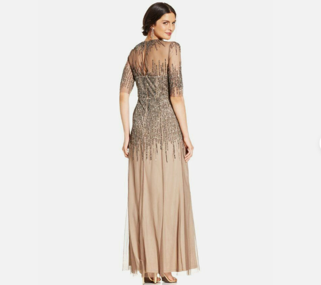 Adrianna Papell Lead Brown Elbow Sleeve Illusion Beaded Sequin Gown 4 A211