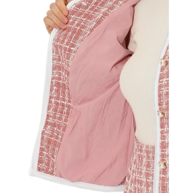 Collarless, Plaid Tweed Fabric, Contrast Panel Trim, Mini Skirt, Womens Two Piece Sets