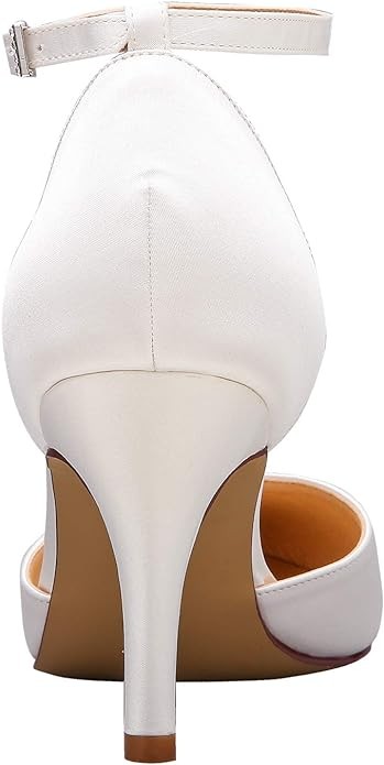 ELEGANTPARK Women Pointed Toe High Heel Pumps Satin Ankle Strap Wedding Bridal Evening Party Dress Shoes