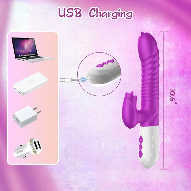 ESVOW Thrusting Rabbit Vibrator for Women, Stimulator Sex Toys with 10 Tongue Licking Vibration & 3 Telescopic Modes & Heating Function,5 IN 1 Waterproof Adult Toy for Couples Pleasure