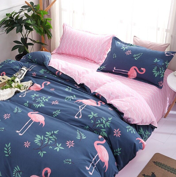 Flamingo Leaf Twin Size Duvet Cover Bedding Set Pillowcase for Comforter 2 Piece