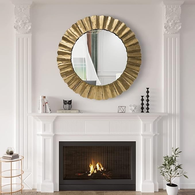 GLAMOROUS FINISH: Our wall mirror is the perfect way to add a vibrant theme to your living room, bedroom, entryway, or bathroom, with a stunning gold finish on its elegant frame