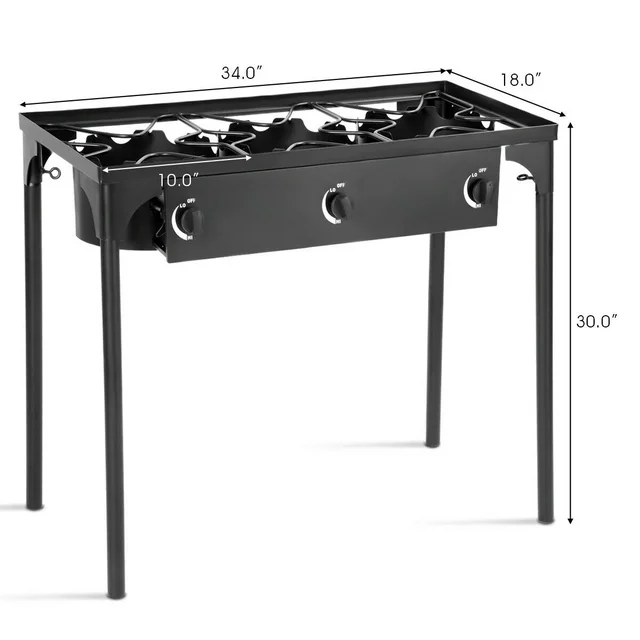 • Cooking Ability:This powerful triple burner, equipped with a cast iron head, outputs a whopping BTU of 220000. BTU burners to boil water and cook your food, whether you're tailgating at the football stadium or camping with the family. And adjustable firepower make your cook more delicious