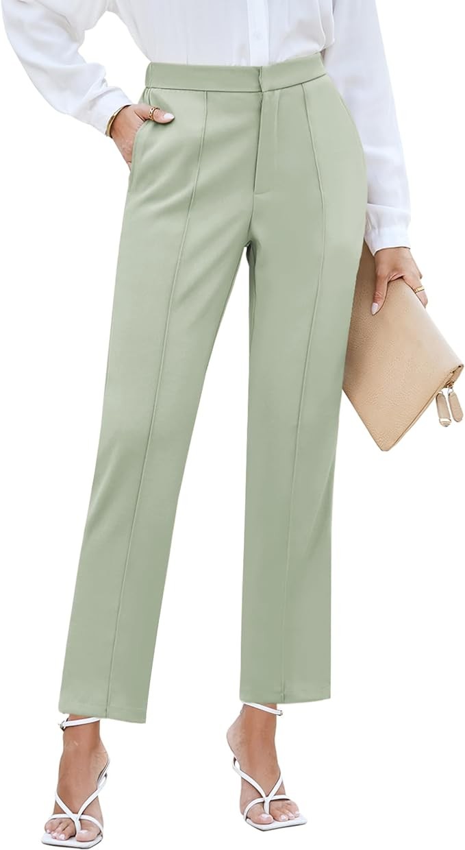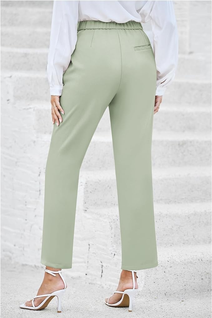 Front seam of ladies pants adds a vertical line that visually lengthens the legs, giving the appearance of a taller and slimmer silhouette. This detail can enhance your overall proportions and create a more polished and flattering look. Made of soft and skin-friendly fabric. No stretch.