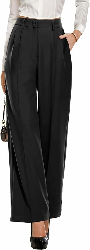 【Classic & Comfortable】 These women's dress pants are made from 100% Polyester, offering exceptional comfort. They are wrinkle-resistant, non-pilling, and can be machine washed without deformation. Women's wide-leg pants serve as excellent basics that can be paired with various styles of tops.