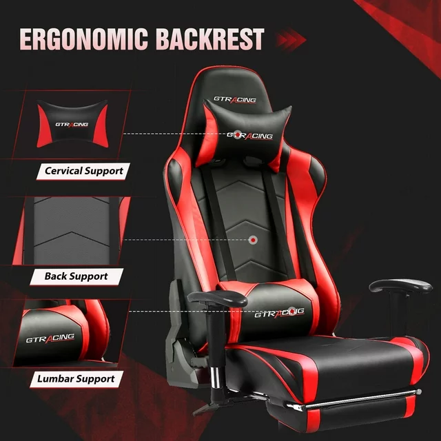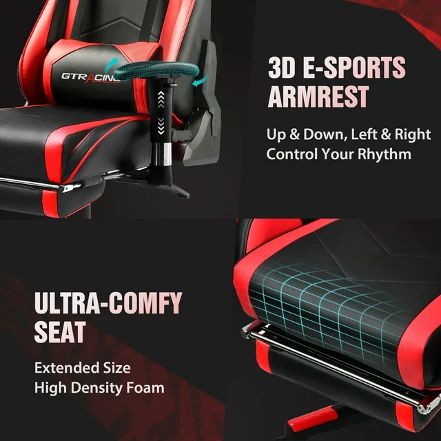 GTRACING Gaming Chair Office Chair PU Leather with Footrest & Adjustable Headrest, Red