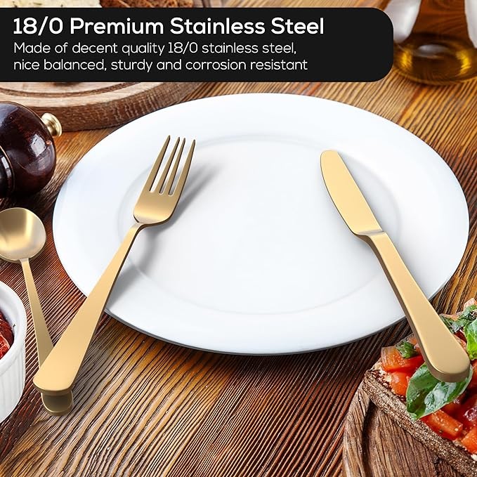 • ? High-Quality Stainless Steel: Crafted with precision from premium 18/0 stainless steel, this cutlery set embodies durability and long-lasting quality. It's more than just flatware; it's a testament to our commitment to excellence in both design and materials.