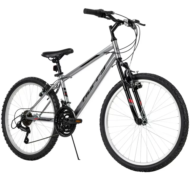 The Huffy Rock Creek 24-inch MTN Bike combines a hardtail frame, great style and the right specs to have a blast over bumps on paved trails or rides around the house. Smooth 18-speed index shifting system with a Shimano rear indexed derailleur shifts smoothly between gears for quick adjustments for uphill climbs or accelerating on level ground.