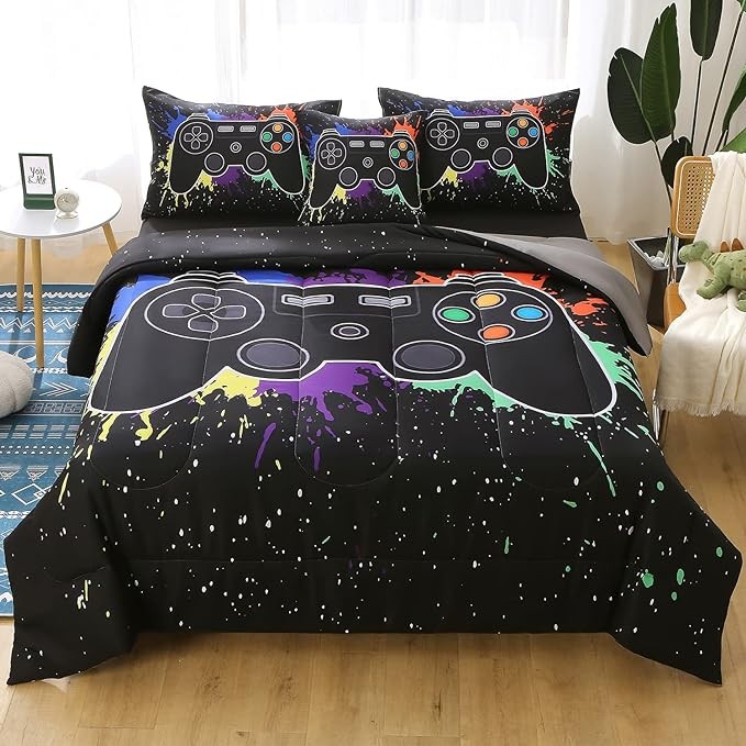 • 【Perfect Gift Choice】The 6 piece bad in a bag twin gamer comforter is perfect for decorating any bedroom, kids room, guest room, dorm, playroom, RV or vacation home. Great gift for boys, girls and kids on Birthday, Thanksgiving , Christmas and Valentine's Day. It is not only a bedding comforter, but also a great gift idea for teen boy kids adults.