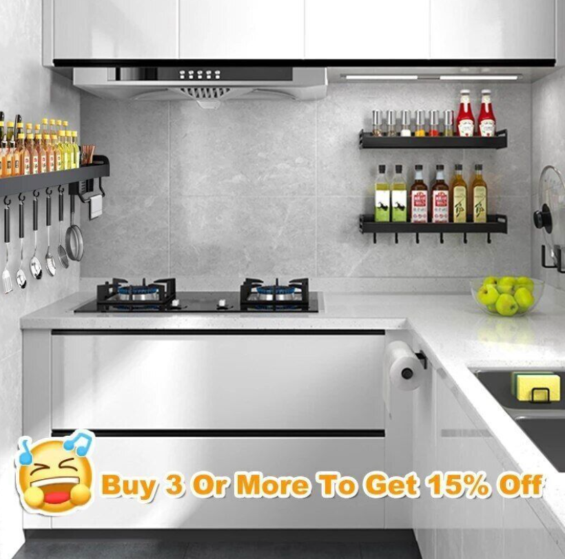 Kitchen Shelf Wall-mounted Spice Storage Racks Punch-free Kitchen Holder Wall