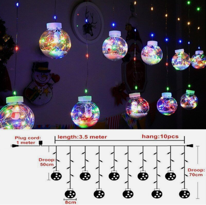 LED Curtain String Light Ball Santa Claus Snowman Xmas Tree Christmas Decoration