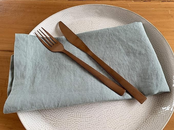 Sage green color natural stonewashed french linen cloth dinner napkins for your dining table inside and outside, these stylish napkins can dress up your table to impress friends and family both in an elegant formal table setting or in a rustic informal table setting. Great for holiday tables, lunch and dinner parties and for everyday use