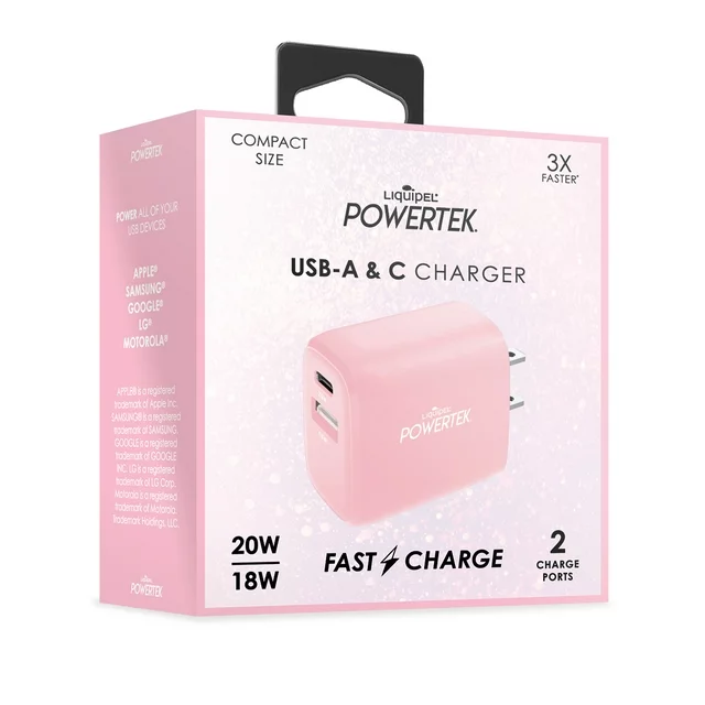 The Liquipel Powertek Dual Port USB A & USB C Wall Block Charger is a versatile and high-quality charging solution for all your devices. With its dual-port design, this charger allows you to charge two devices simultaneously. The USB C port supports fast charging with up to 20W power delivery, while the USB A port delivers up to 18W of power for efficient charging of other devices. This charger has a compact and portable design, with a foldable plug for easy storage and transport. It is universally compatible with a variety of devices, including iPhone, iPad, iWatch, AirPods, Galaxy, Android, Pixel, and USB Type-C devices. In addition to its dual-port design and fast charging capabilities, the charger comes with a USB-C to USB-A cable for convenient charging of your devices. The Liquipel Powertek charger also comes with a 12-month warranty, ensuring customer satisfaction and peace of mind. Overall, the Liquipel Powertek Dual Port USB A & USB C Wall Block Charger is a reliable and efficient charging solution for anyone who needs to charge multiple devices on-the-go. Its fast charging capabilities, compact design, and universal compatibility make it a must-have accessory for anyone who relies on their devices for work or play.