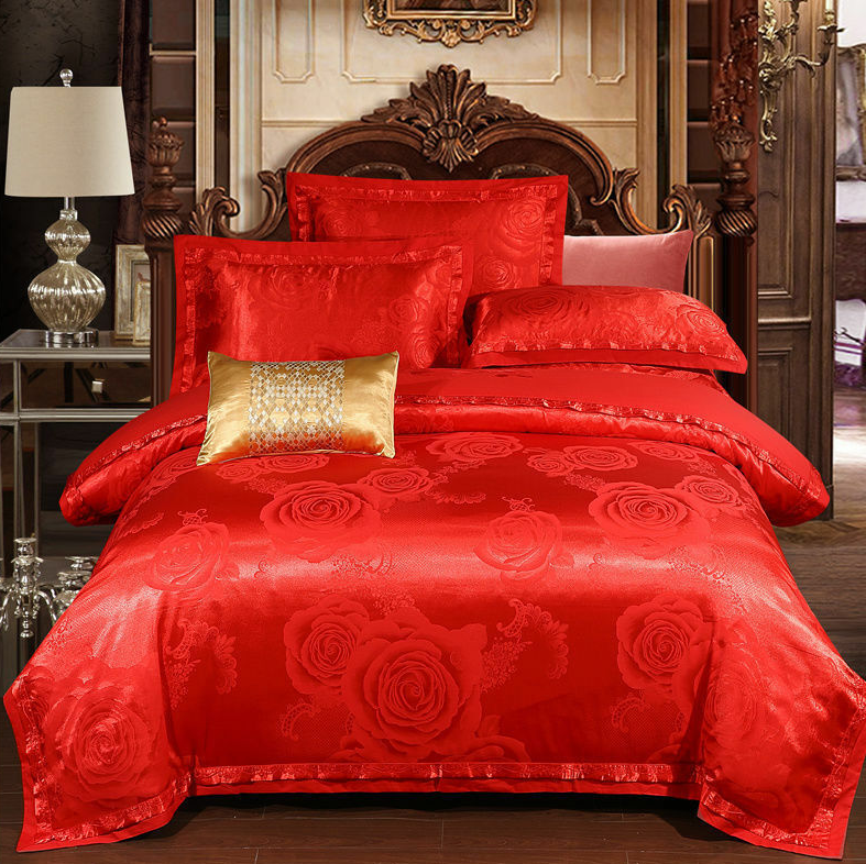Duvet cover outer side is made of satin jacquard fabric, duvet cover inner  side and bed sheet is made of 100% cotton fabric,  use pure environmental reactive printing, bright colors, high color fastness, protect health. nature cotton fabric ,more comfortable and breathable. bring excellent sleep.