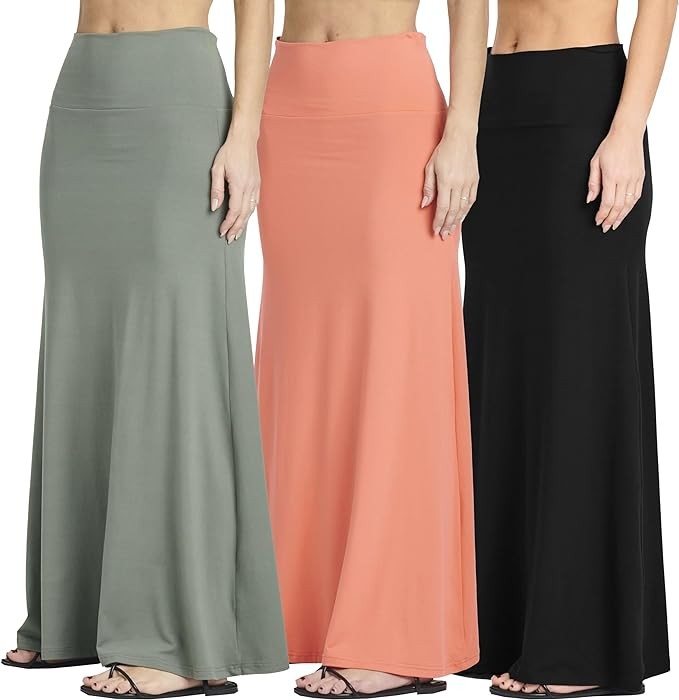 Size-Inclusive Comfort: Available in women's plus sizes, these maxi skirts are designed to flatter all body types. The high waist and tummy control provide a comfortable fit, ensuring confidence with every wear.the ultimate in comfort and style with our 3-pack of Women's Long Maxi Skirts. Whether you're lounging at home or stepping out for a night on the town, these skirts are your go-to choice for casual chic. Embrace the flowy, vacation-ready vibes and turn heads wherever you go.