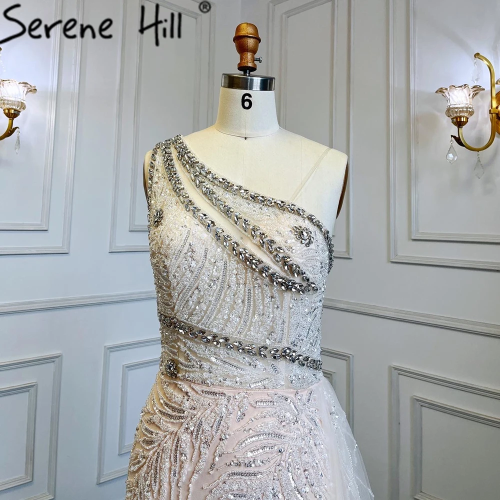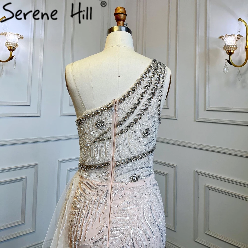 Serene Hill Beige Split Luxury Elegant Evening Dresses Gowns 2022 Mermaid Beaded Overskirt For Women Party CLA71623