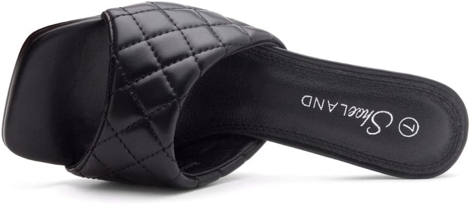 Shoe Land Womens Melrose High Heel Sandals Square Open Toe Quilted Single Band Slip on Heeled Mules