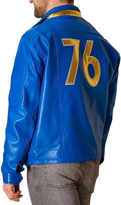 • Inspired by Fall-out 76: Get ready to step into the world of Fall-out 76 with this iconic blue leather jacket, inspired by the famous action series video game.
