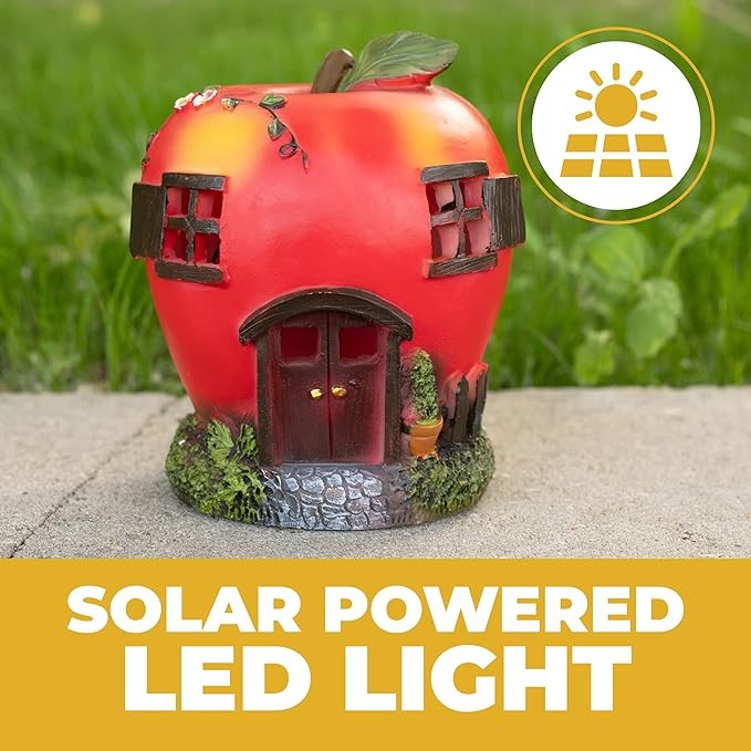 Apple Fairy House Solar Garden Light. This adorable Solar Light for outside garden & Lawn will warm your heart and add vivid to your garden and outdoor Patio.
