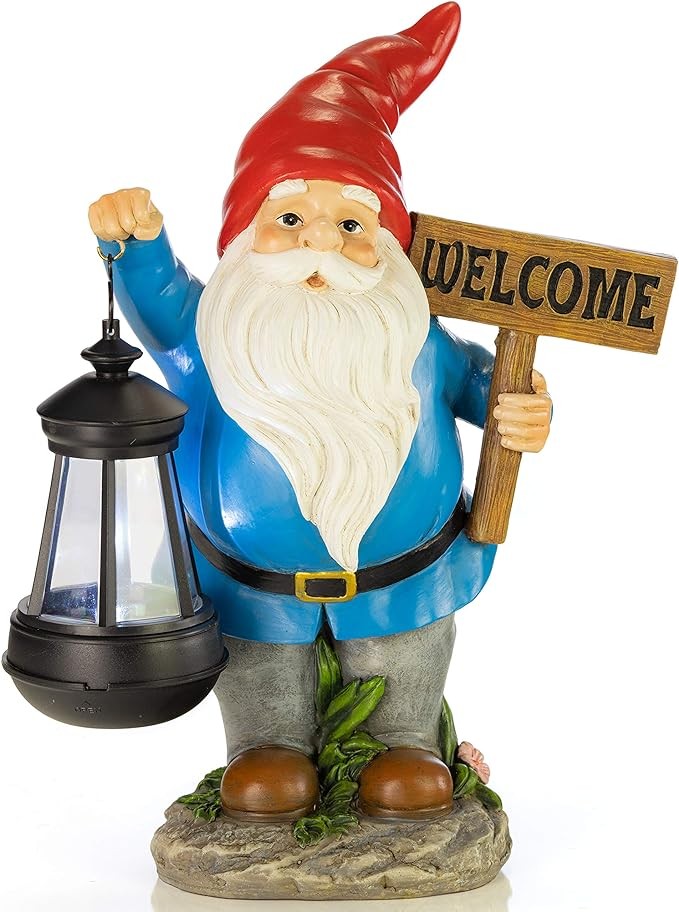 Hand painted garden decor made of weather resistant material that's easy to install and set up. Upgrade your decorations with these gnome welcome statues.