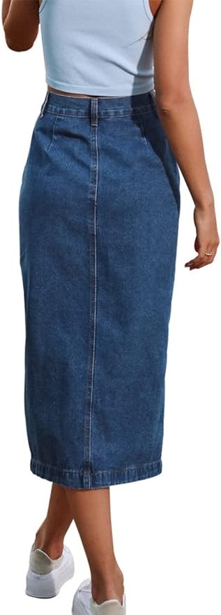 ♥MATERIAL: These midi jean skirts are made of polyester fabric,Soft stretchable material,Durable,Not thin,It is comfortable to wear.